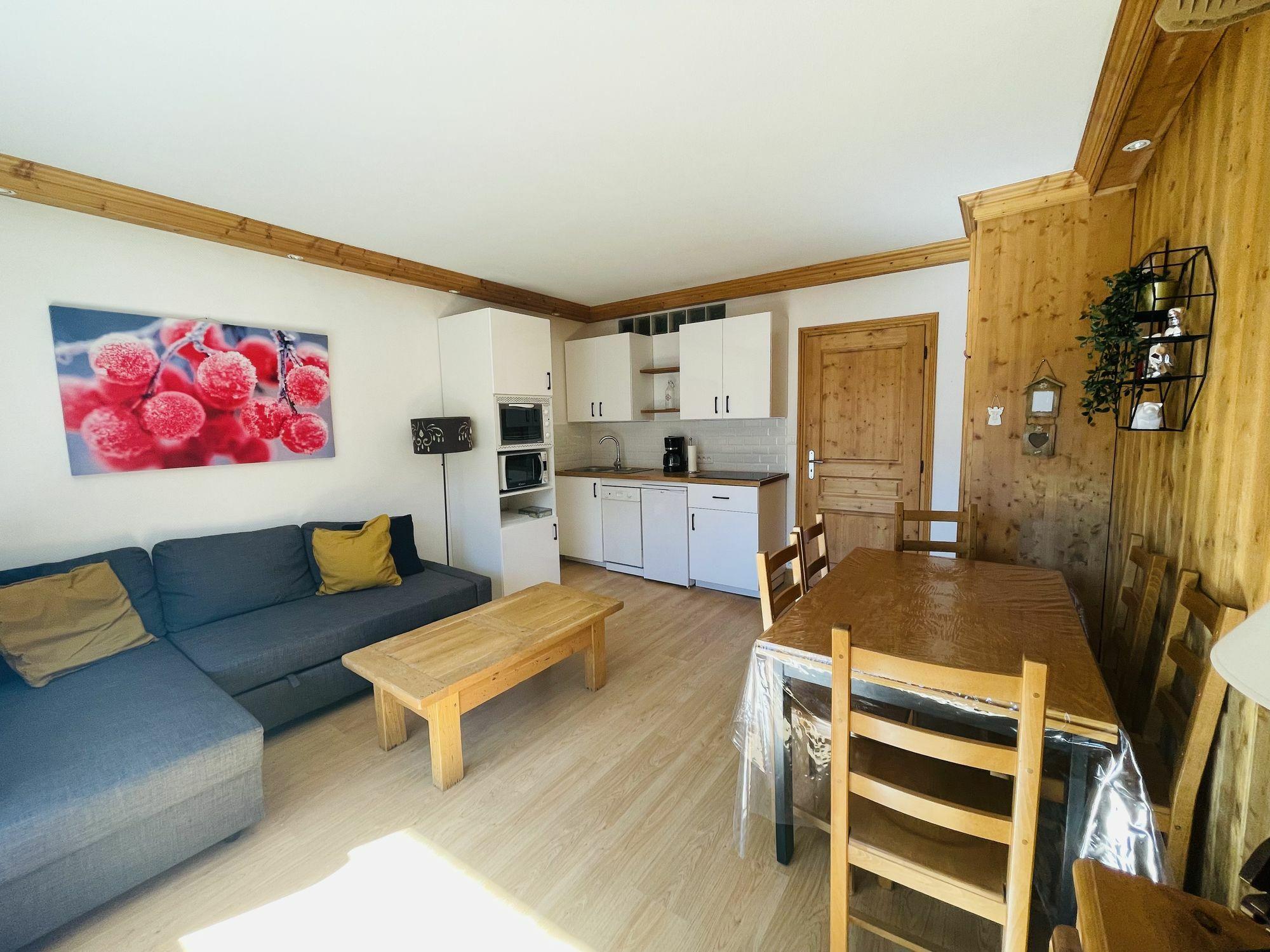 Cosy apartment with a living room equipped with a fireplace. You can enjoy a southern exposure with a panoramic view on the slopes.