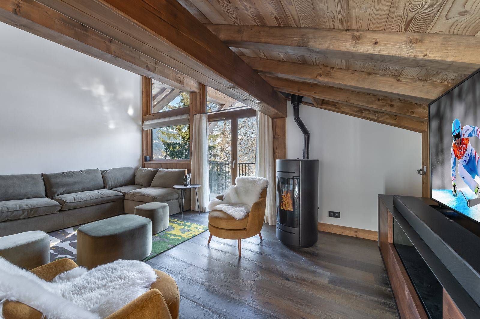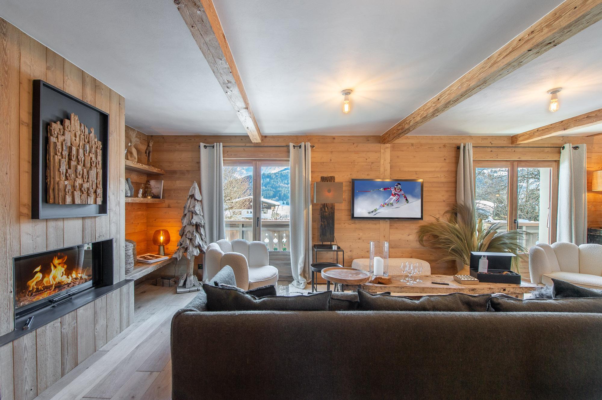 Superb chalet with a subtle mix of traditional and contemporary style. You will be seduced by the cathedral lounge with its imposing central fireplace, where you can relax while enjoying a splendid view of the Aravis chain.