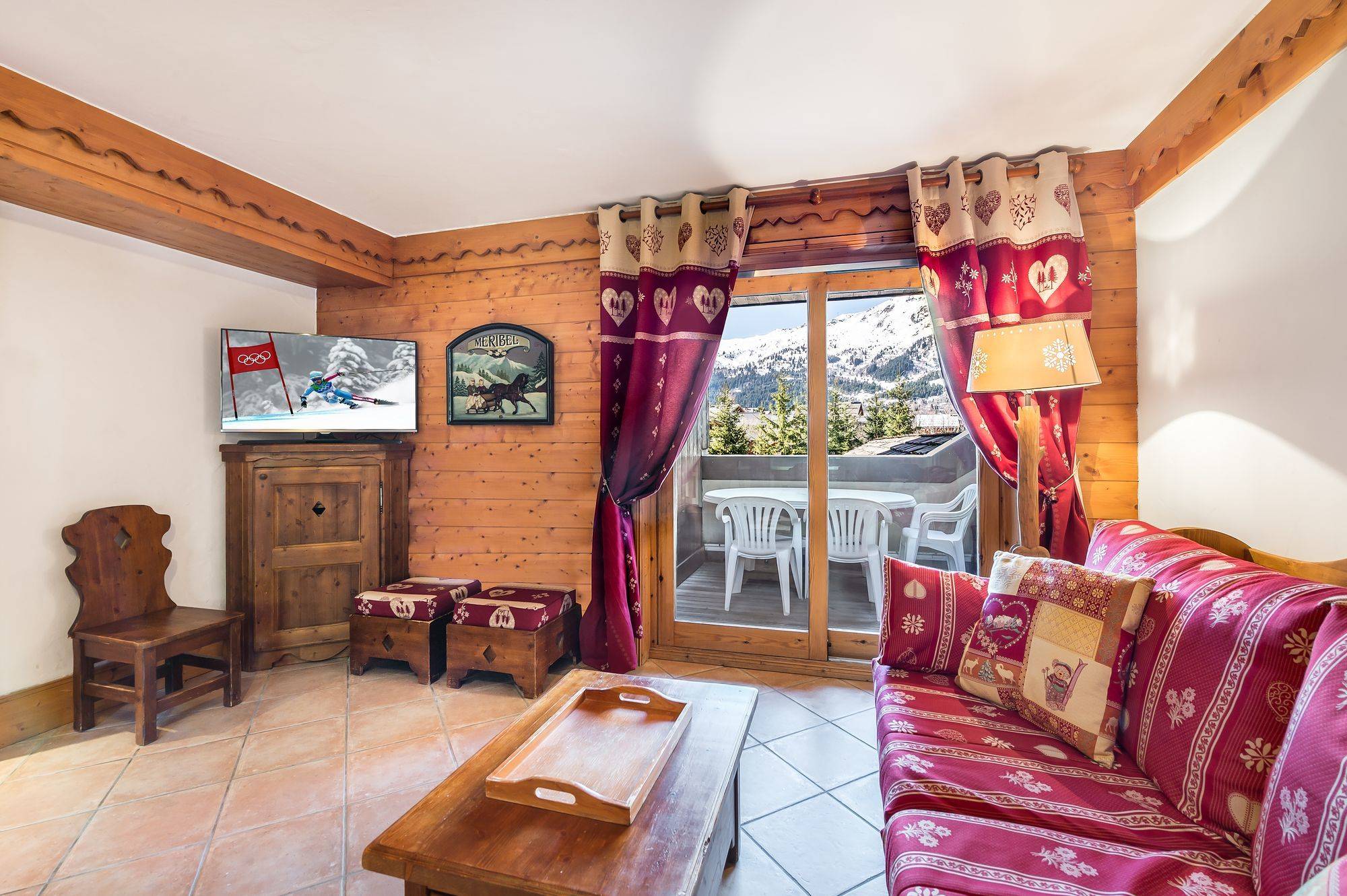 ocated in Residence A of Les Fermes de Méribel Village. The A214 has a ski locker and free access to the swimming pool, sauna and hammam of the main residence. South facing flat with a terrace and a beautiful view on the slopes.