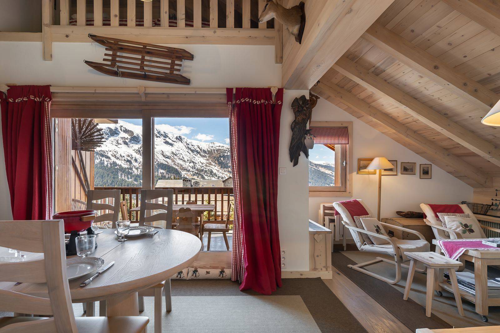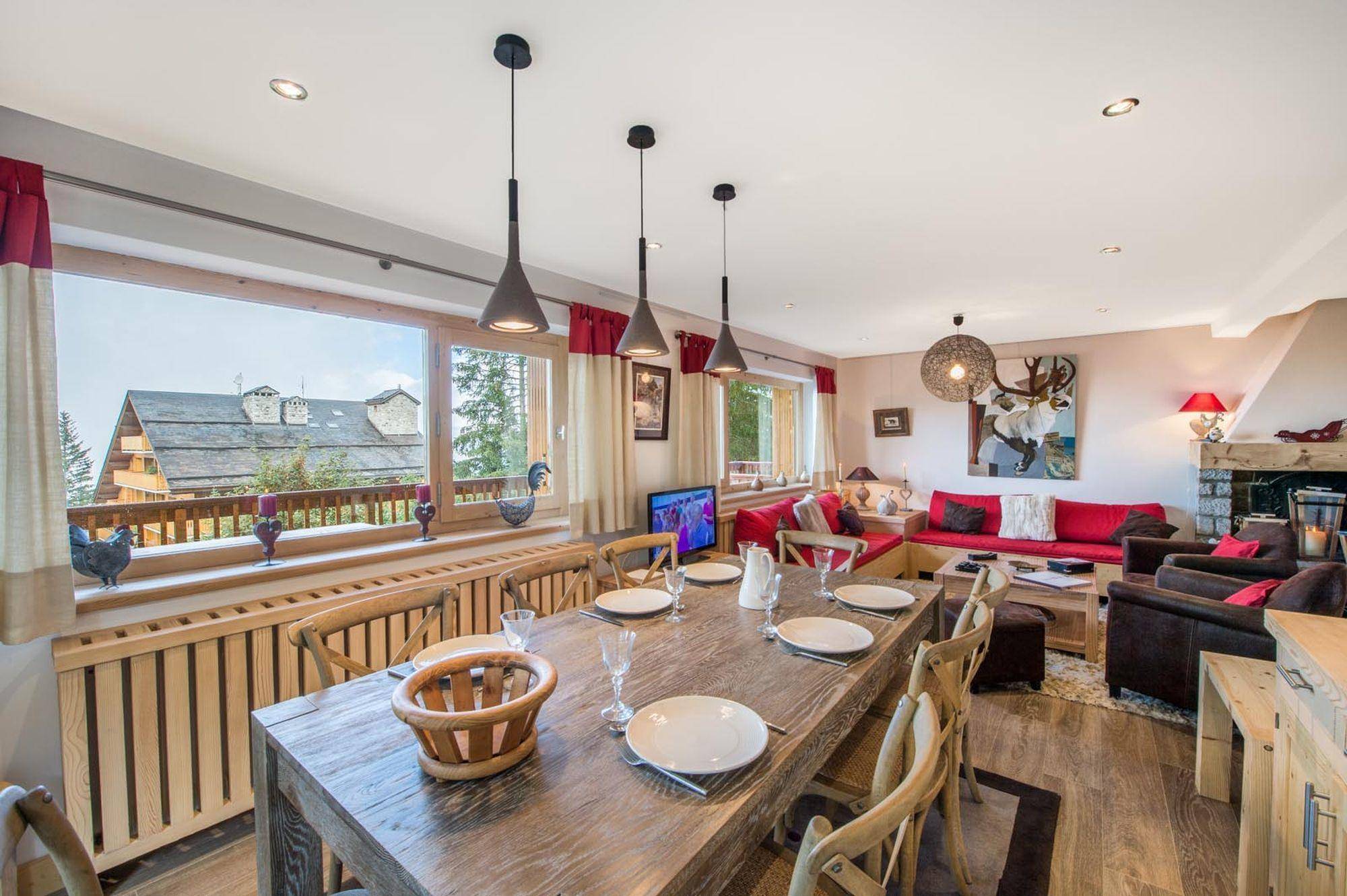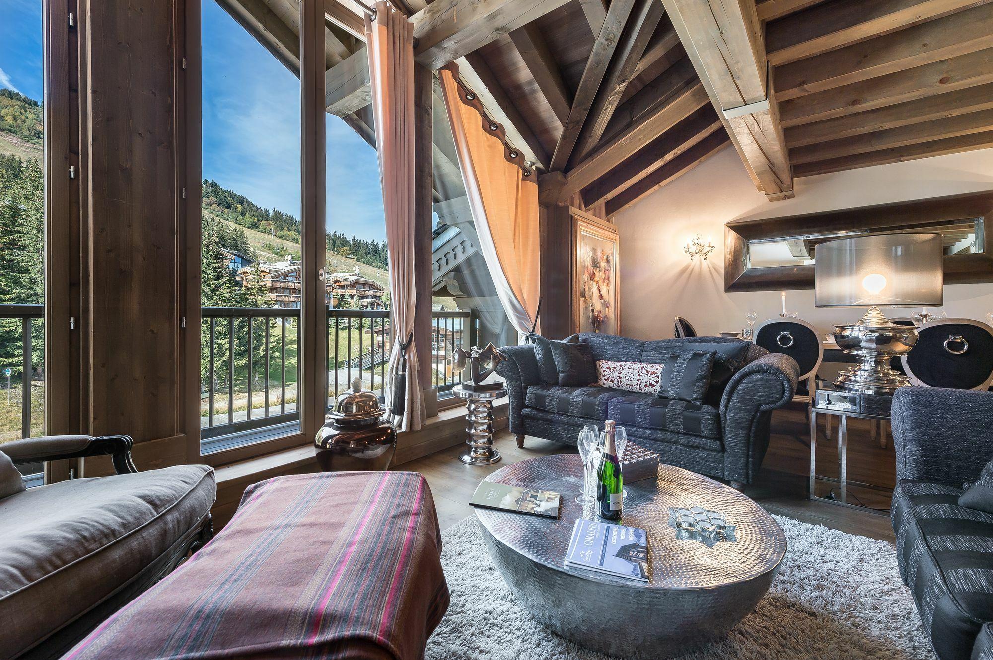 The duplex apartment Forêt du Praz 3 has a unique location on the top floor of a luxury residence to enjoy stunning views of the resort and mountains. The residence is at the bottom of the ski slopes and close to amenities.