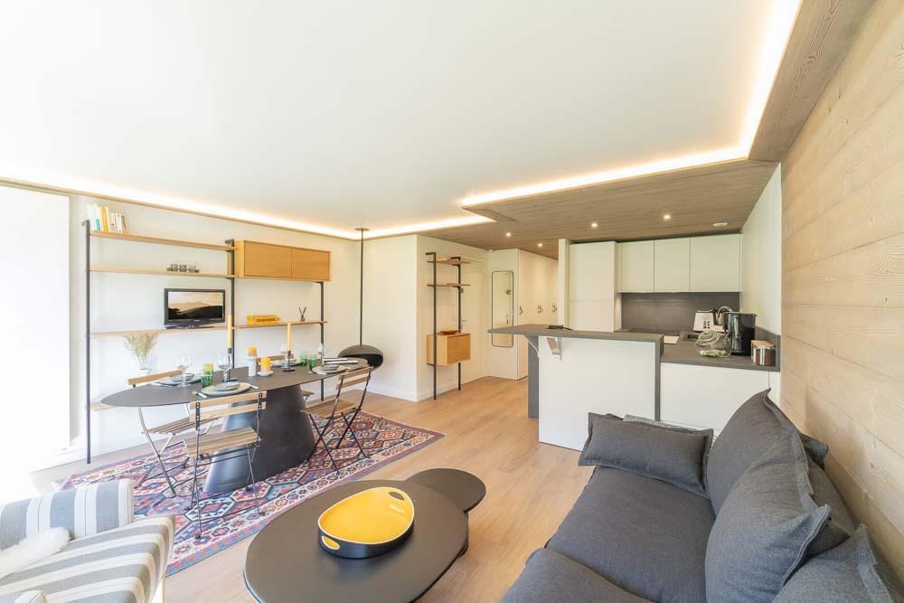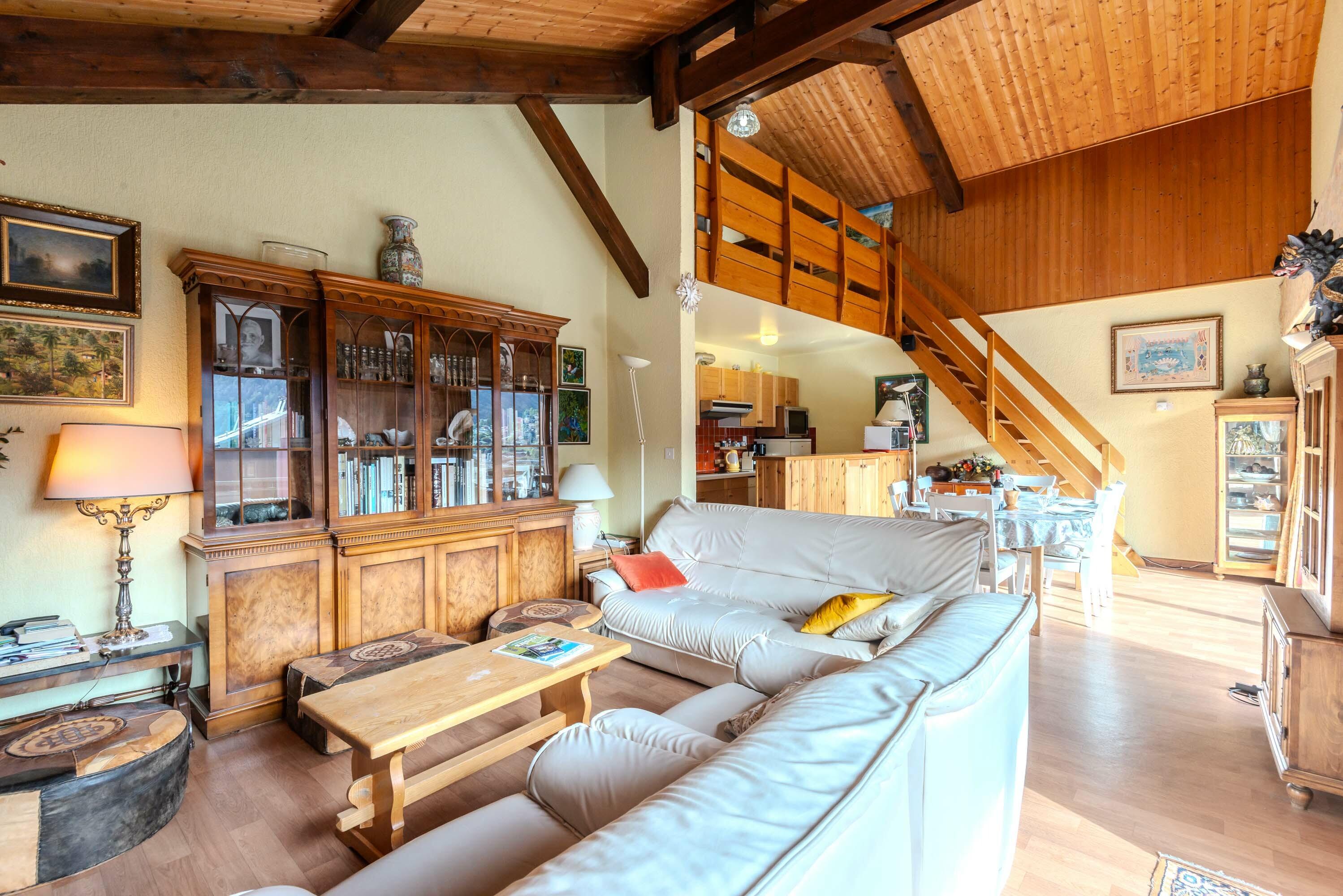 Luxury duplex apartment located in the heart of the old village with a view of the mountains. The free shuttles are 50 meters away.