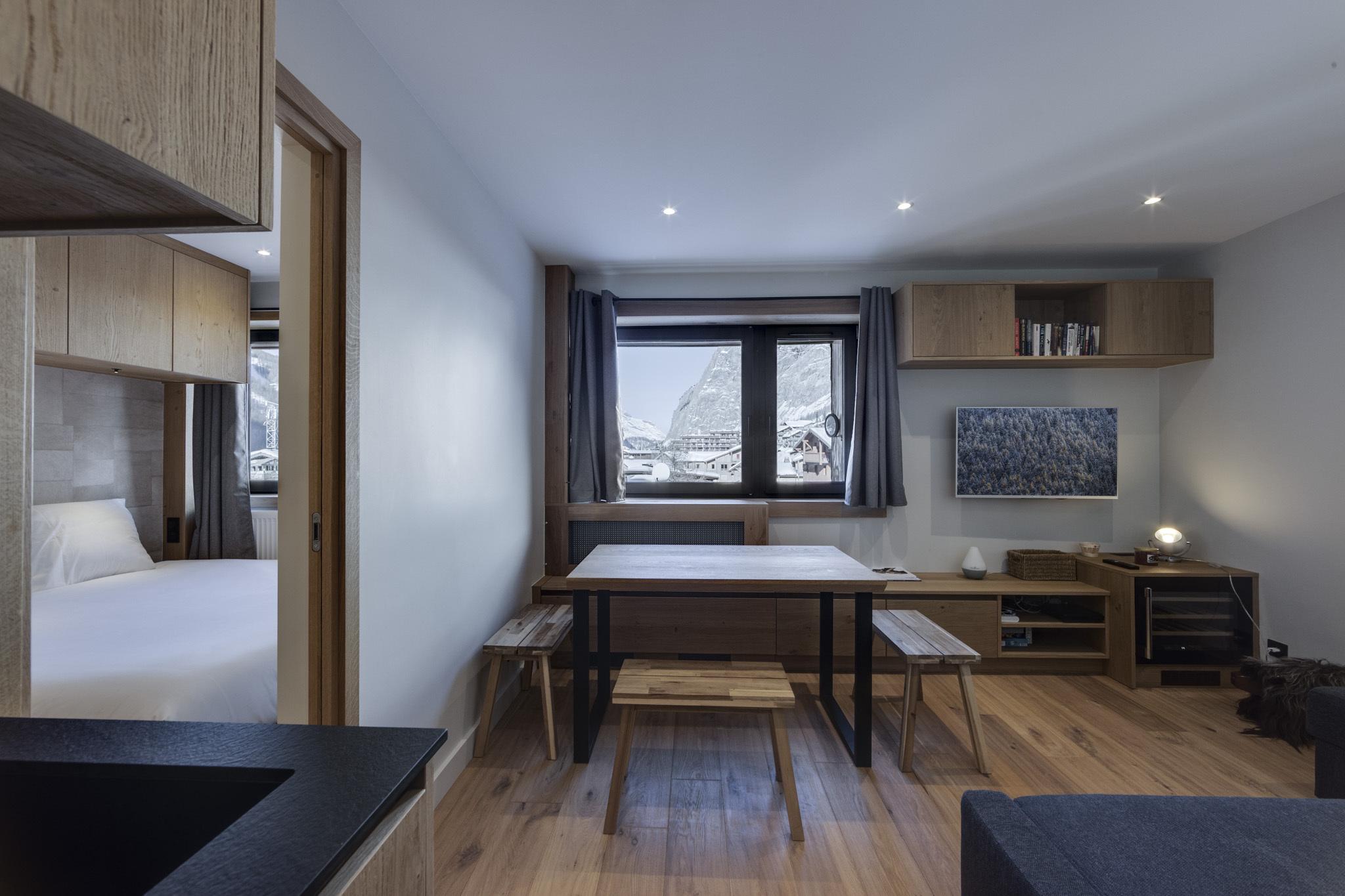 Le Pont du Bouchet is an elegant duplex apartment on the top floor of the residence Pont du Bouchet . The traditional interior design and high ceilings in the living room make it a particularly comfortable and family friendly apartment.