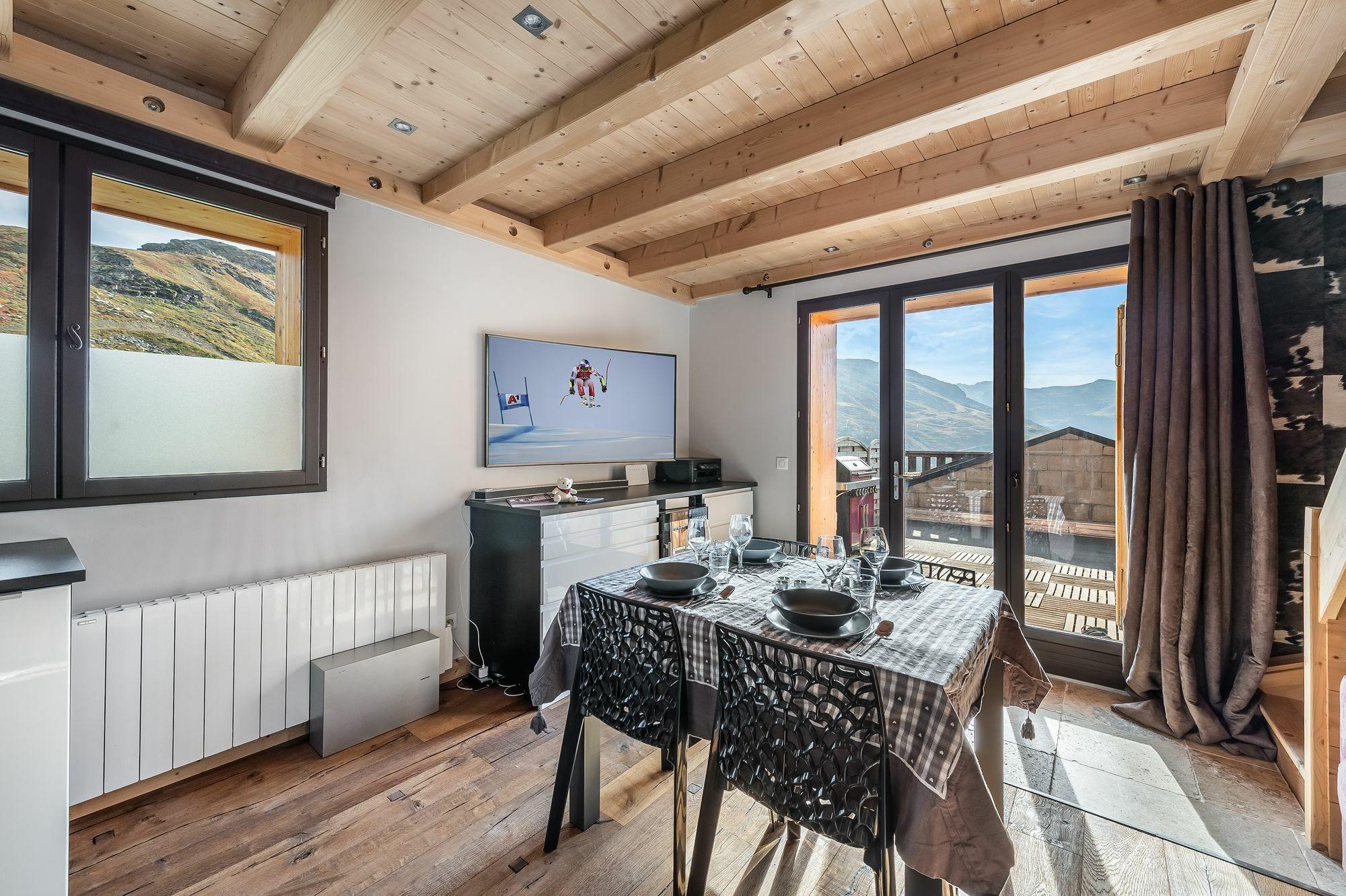 Located at the entrance of the resort of Val Thorens, a hundred meters from the first departure of the slopes, the apartment "Le Rocher de Lisa" is ideal for a stay with friends or for a small family.