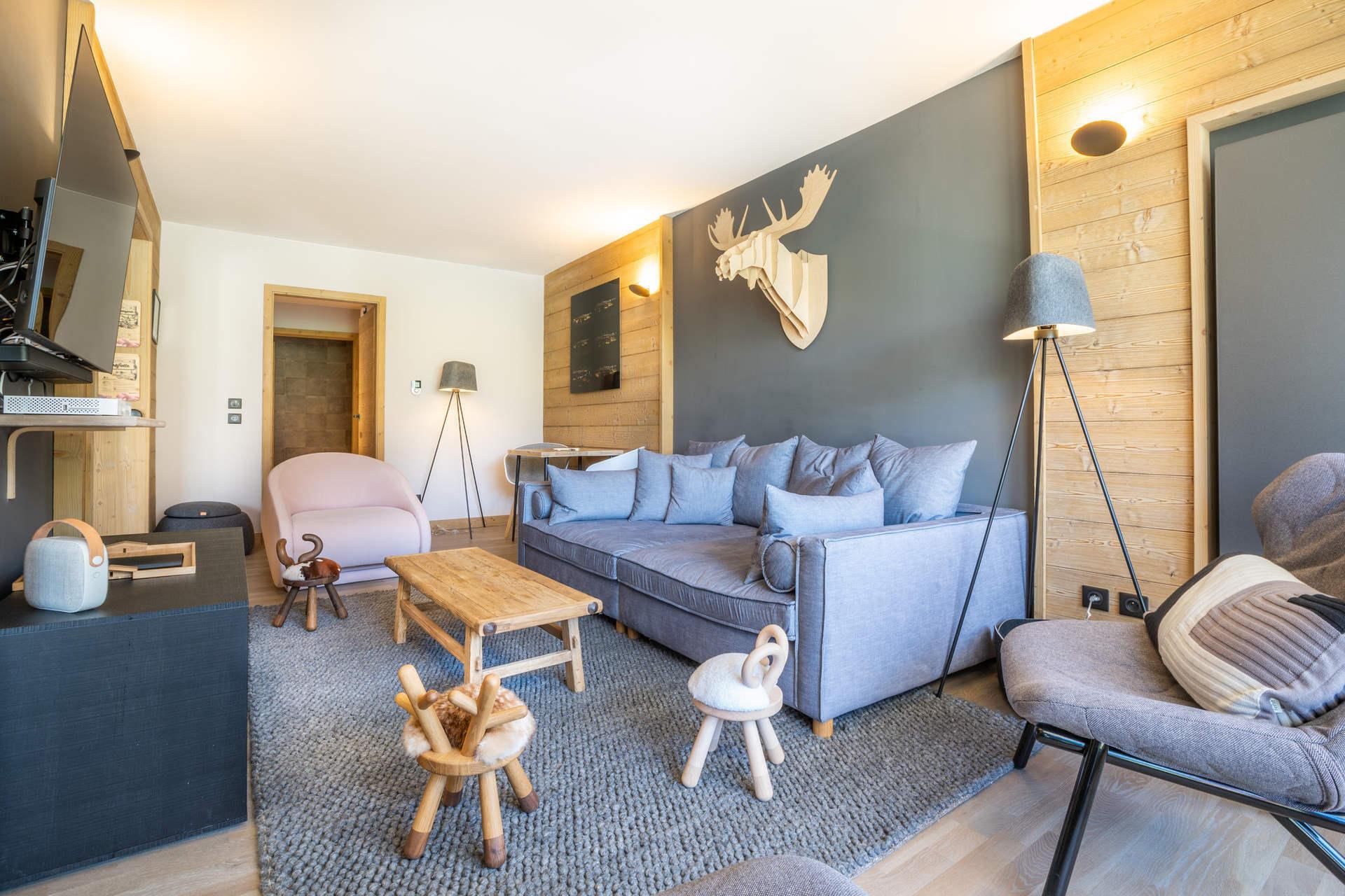 Meribel Apartment: duplex of 6 bedrooms located in the new Chalet Les Belles Alpes close to the ski slopes and amenities. Let yourself be seduced by its volumes and its trendy and up-to-date decoration.