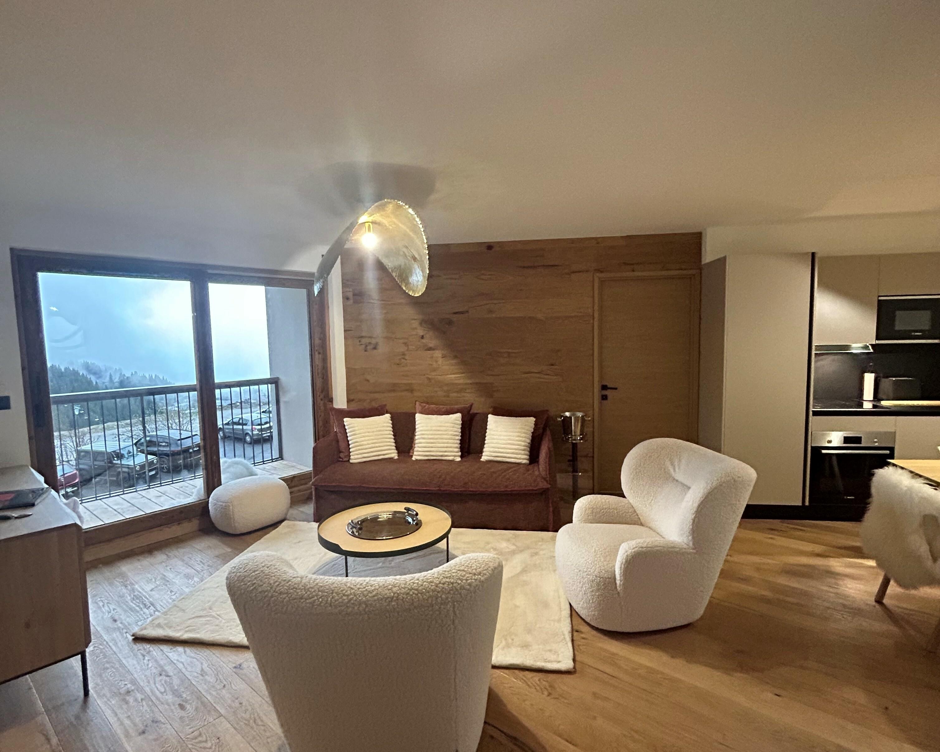 Residence close to the slopes from a new program delivered in December 2022. Located at the Domaine de l'Ariondaz, on the edge of the forest, this apartment is perfect for 1 or 2 families.