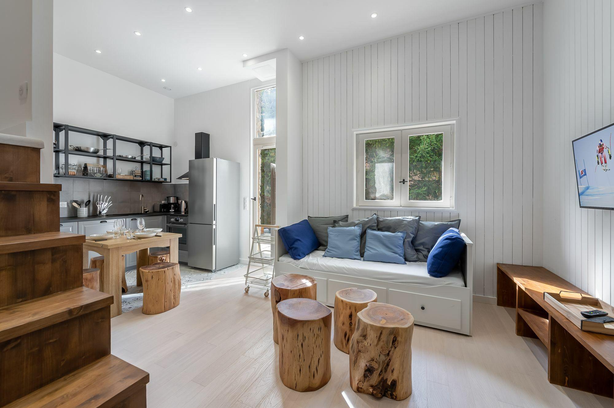 Superb duplex apartment located in the center of Chamonix, in a new and quiet residence. Let yourself be seduced by the warm traditional style mixed with the refined and elegant decoration. A real cocoon to gather and spend a nice stay in the mountains.