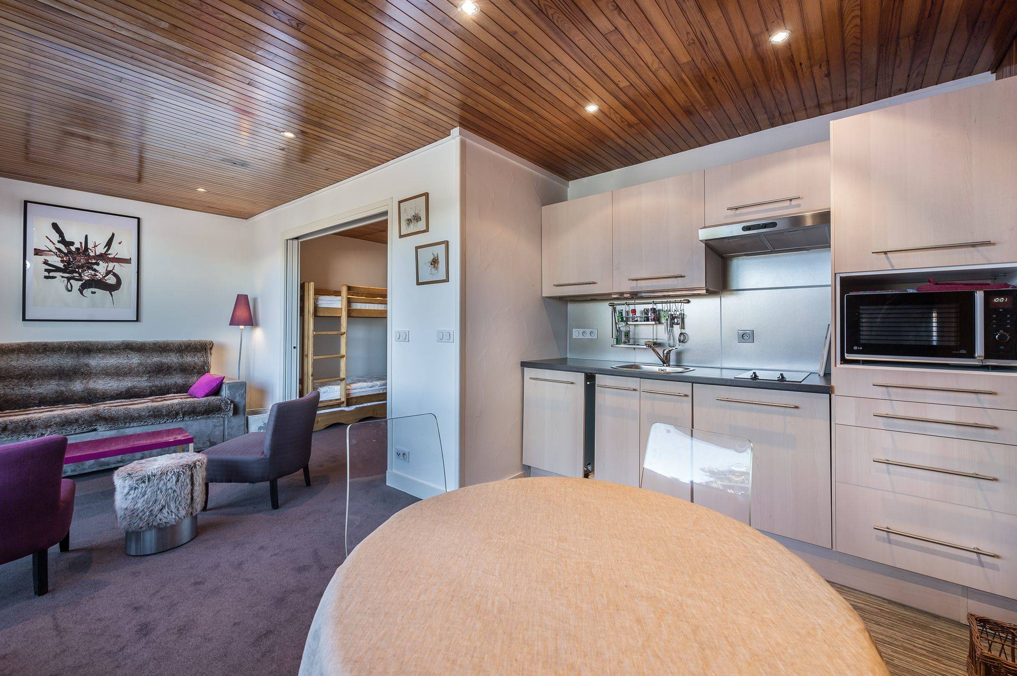 Beautiful studio cabin with a typical Savoyard design located in the centre of Courchevel Moriond near all its amenities. It is ideal for a couple with children.