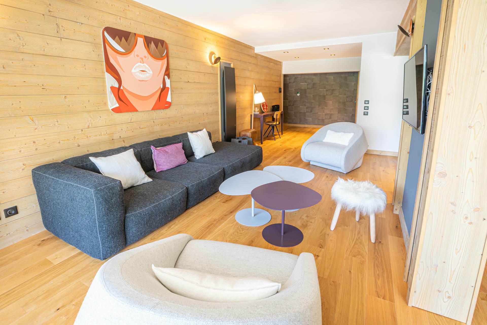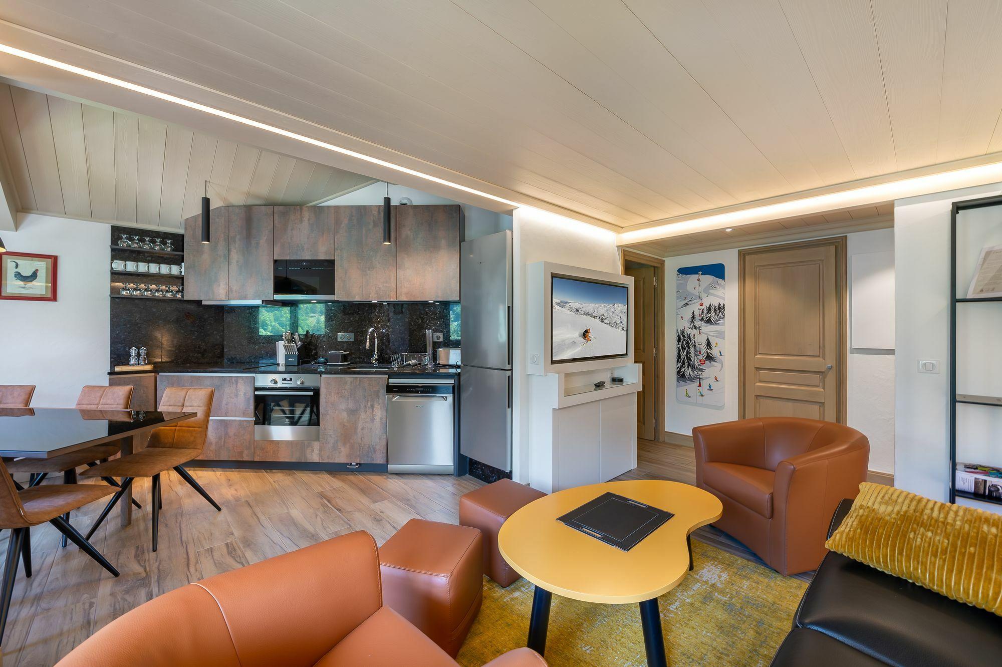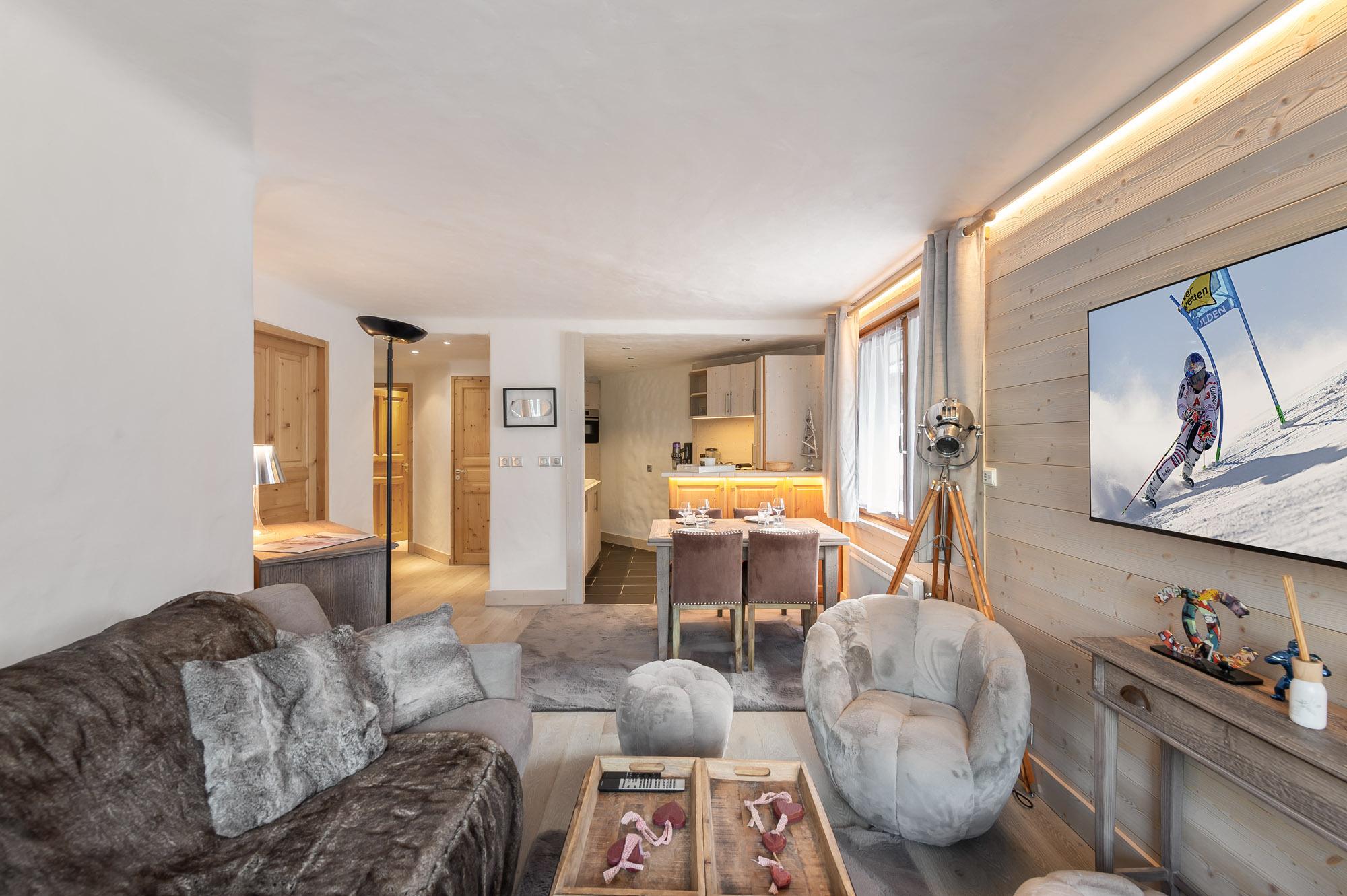 Renovated apartment in a minimalist style, with a view of the resort and the alpine circus of Val Thorens. Easy access to the center of the resort and the ski slopes.