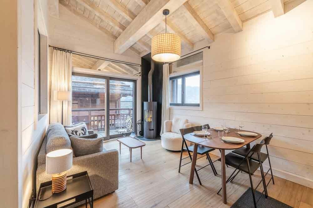 Cosy apartment close to the slopes and the centre of Courchevel La Tania with a panoramic view over the valley.