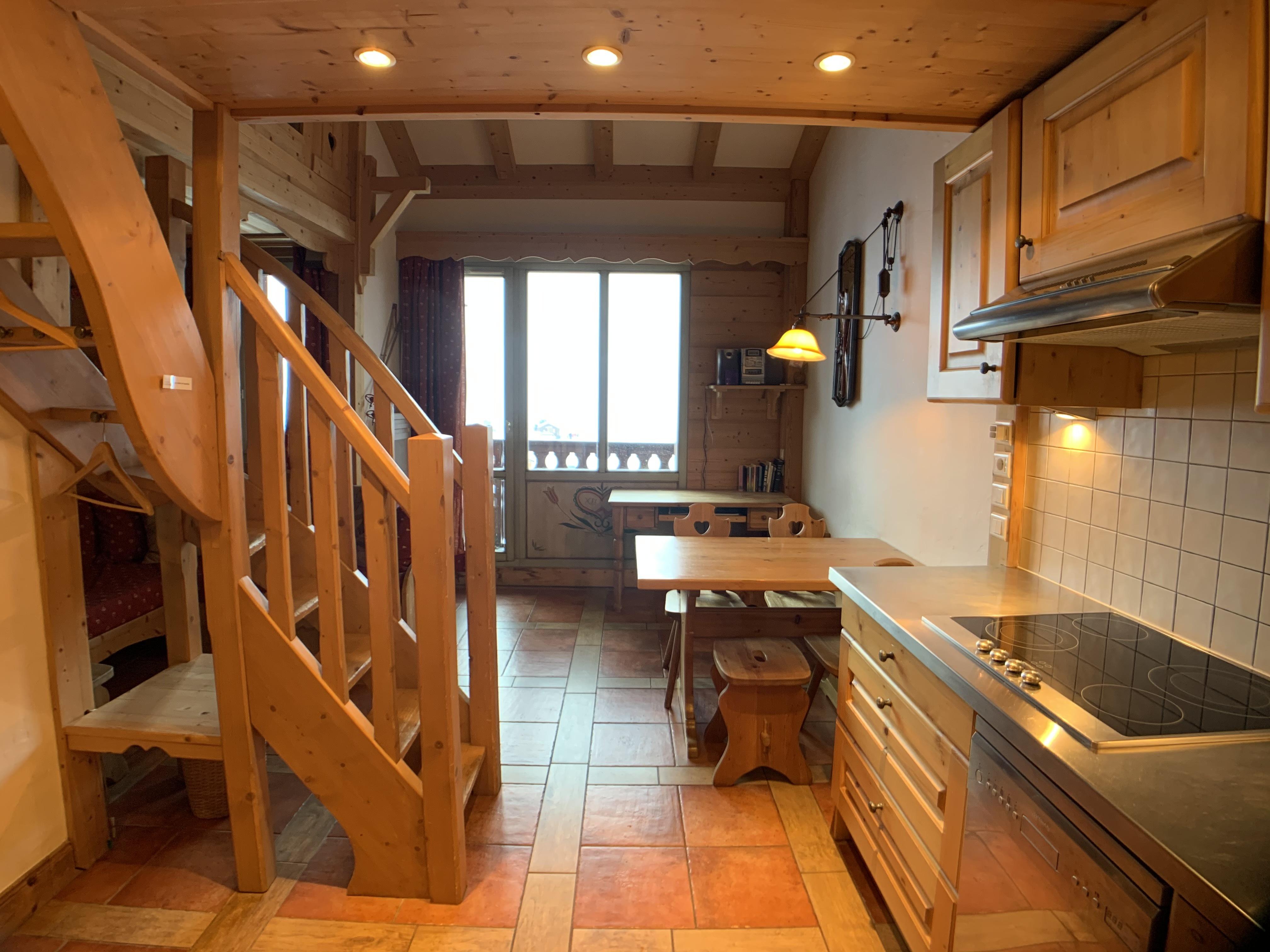 Renovated apartment, quiet on the ground floor of a semi-detached chalet located 300 meters from the slopes, can accommodate a large family with its 4 bedrooms.