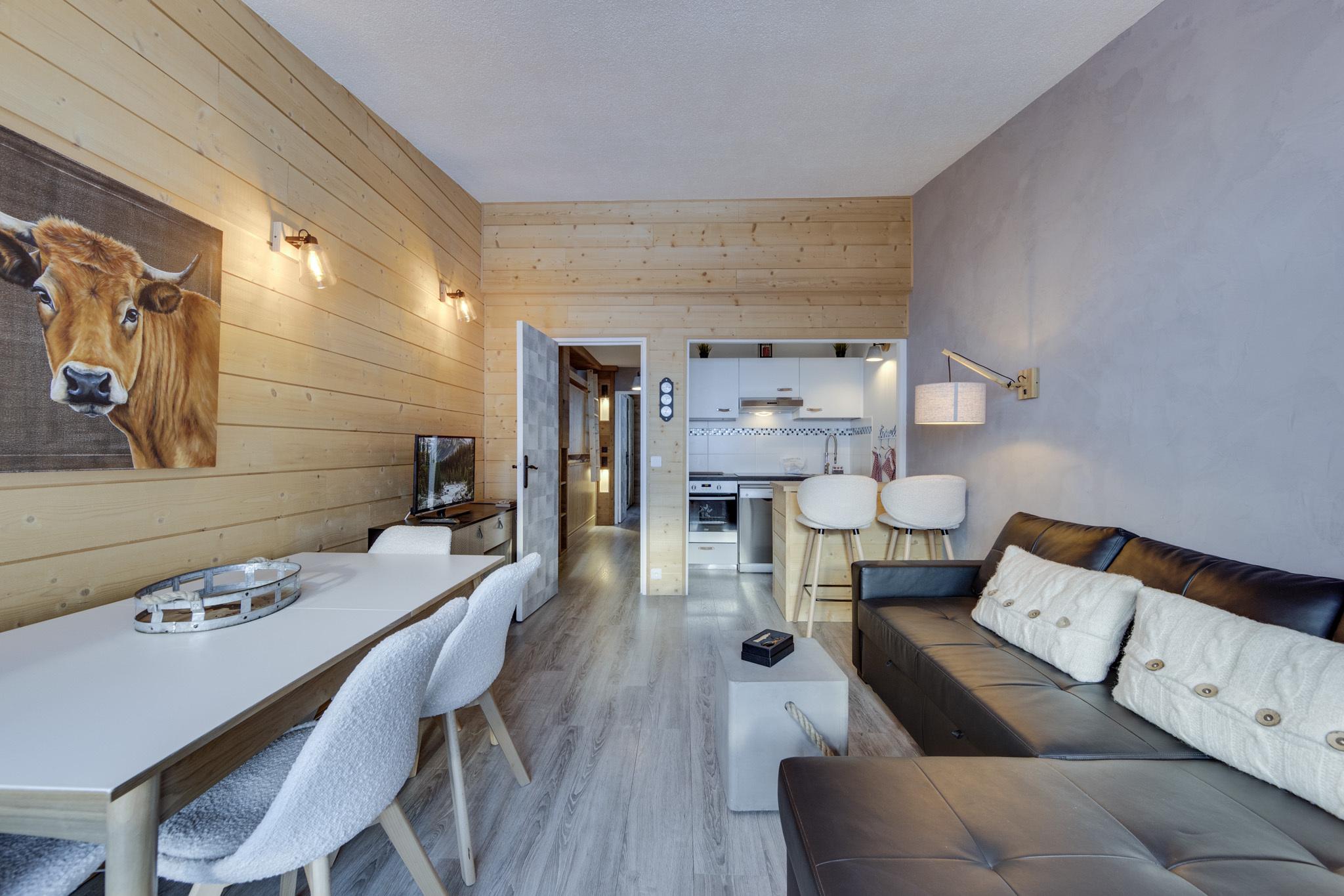 The Schuss 505 apartment has a south-west exposure with a beautiful view of the Val Claret area and the surrounding mountains. Fully renovated, this flat is perfect for a family stay.
