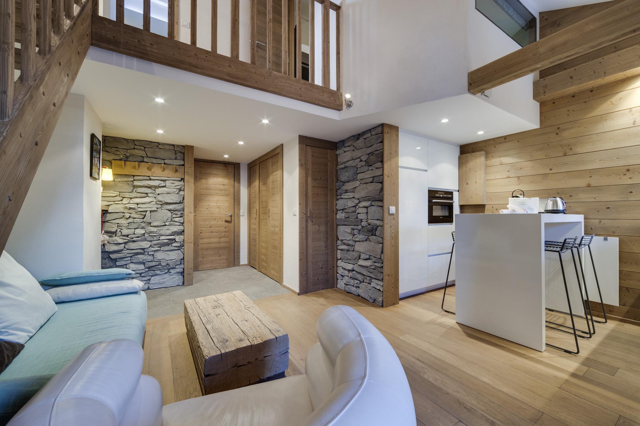 Charming renovated duplex apartment of 40 sqm, located next to the old village of Val d'Isère. Close to all amenities and the slopes, this property is ideal for a family stay.