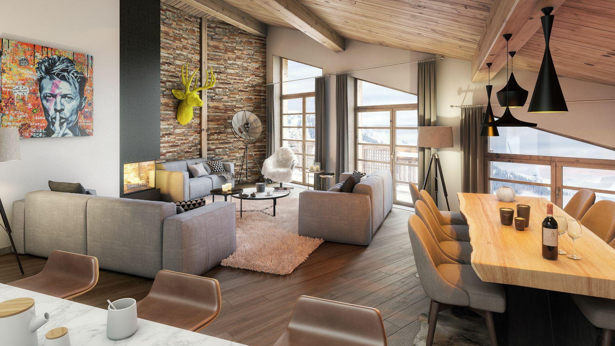 Superb chalet located in the district of Les Tines, overlooking the Mont Blanc chain. Facing south, it offers a breathtaking view of the surrounding peaks. Bright and warm, it also offers quality equipment.