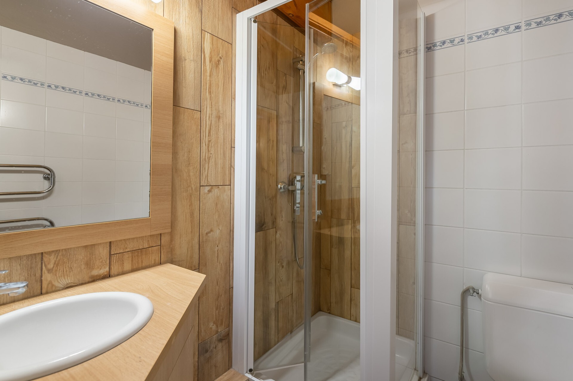 Au niveau 0 : une entrée spacieuse et un sauna privé avec douche pour vous détendre après une journée de ski. Vous trouverez également un espace de rangement.