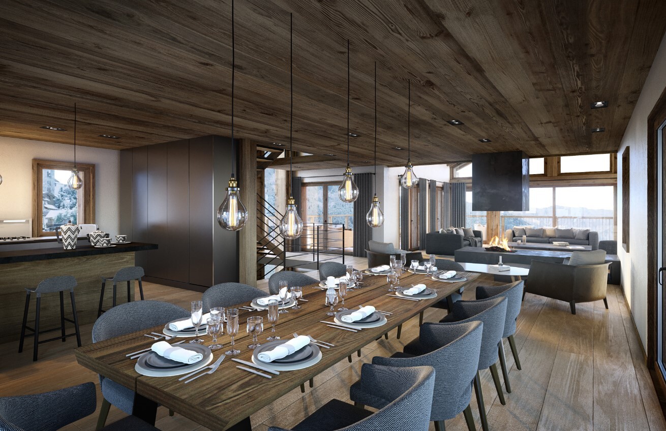Ces biens de prestige, respectant l’architecture traditionnelle et proposant des matériaux et des finitions modernes, offrent de beaux volumes lumineux entre 145 et 365 m² et d’espaces extérieurs pour profiter des vues sur les montagnes.