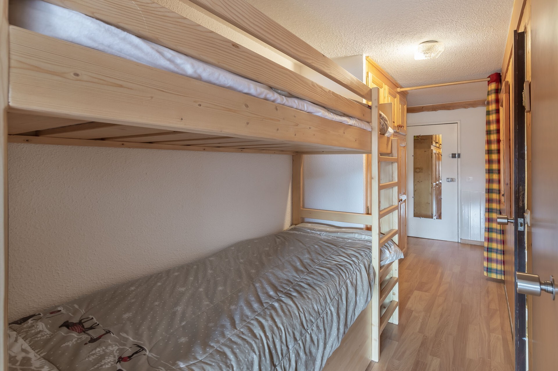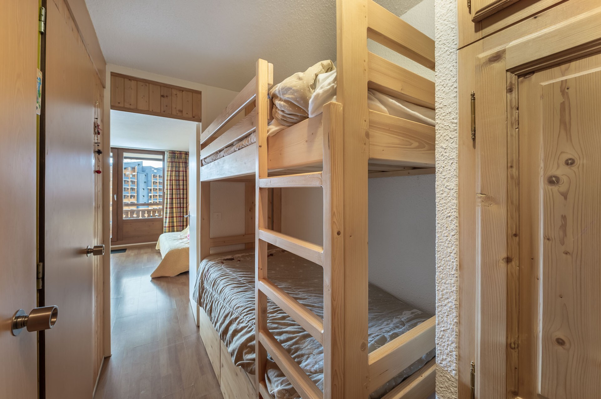 Avec une surface totale d’environ 58 m² ils se composent chacun d’un espace nuit avec un lit double, d’un lit superposé présent dans le couloir, d’une salle d’eau et de toilettes indépendantes, d’une kitchenette ouverte sur un séjour donnant sur un balcon. Vous apprécierez la belle luminosité ainsi que la vue dégagée.