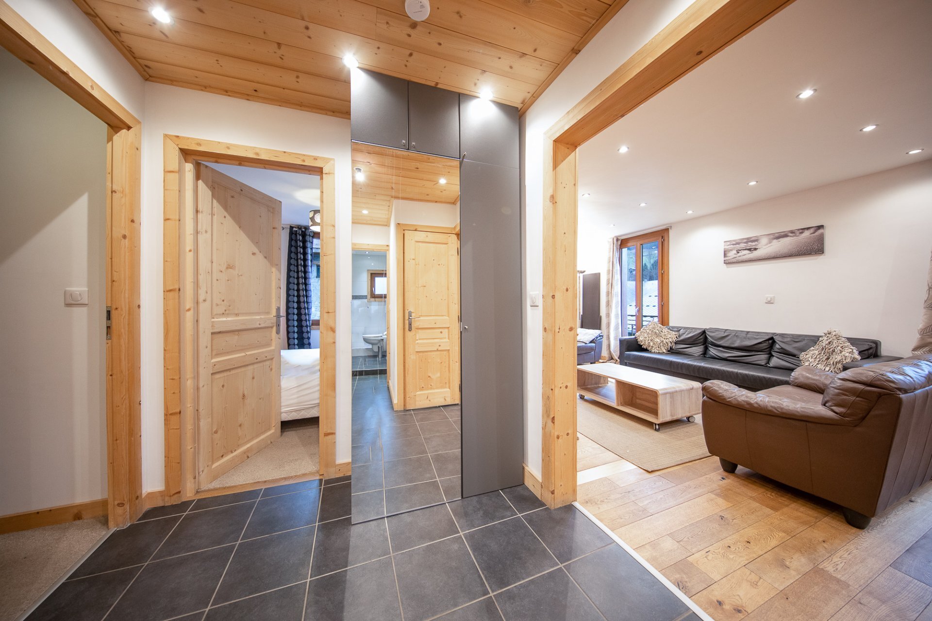 En excellent état, avec un hall d’entrée qui s’ouvre sur un espace de vie lumineux, avec une cuisine moderne entièrement équipée et un coin salon dôté d’un poêle à bois. Les portes françaises s’ouvrent sur deux balcons avec des vues sur Morzine vers les pistes de ski du Pleney.