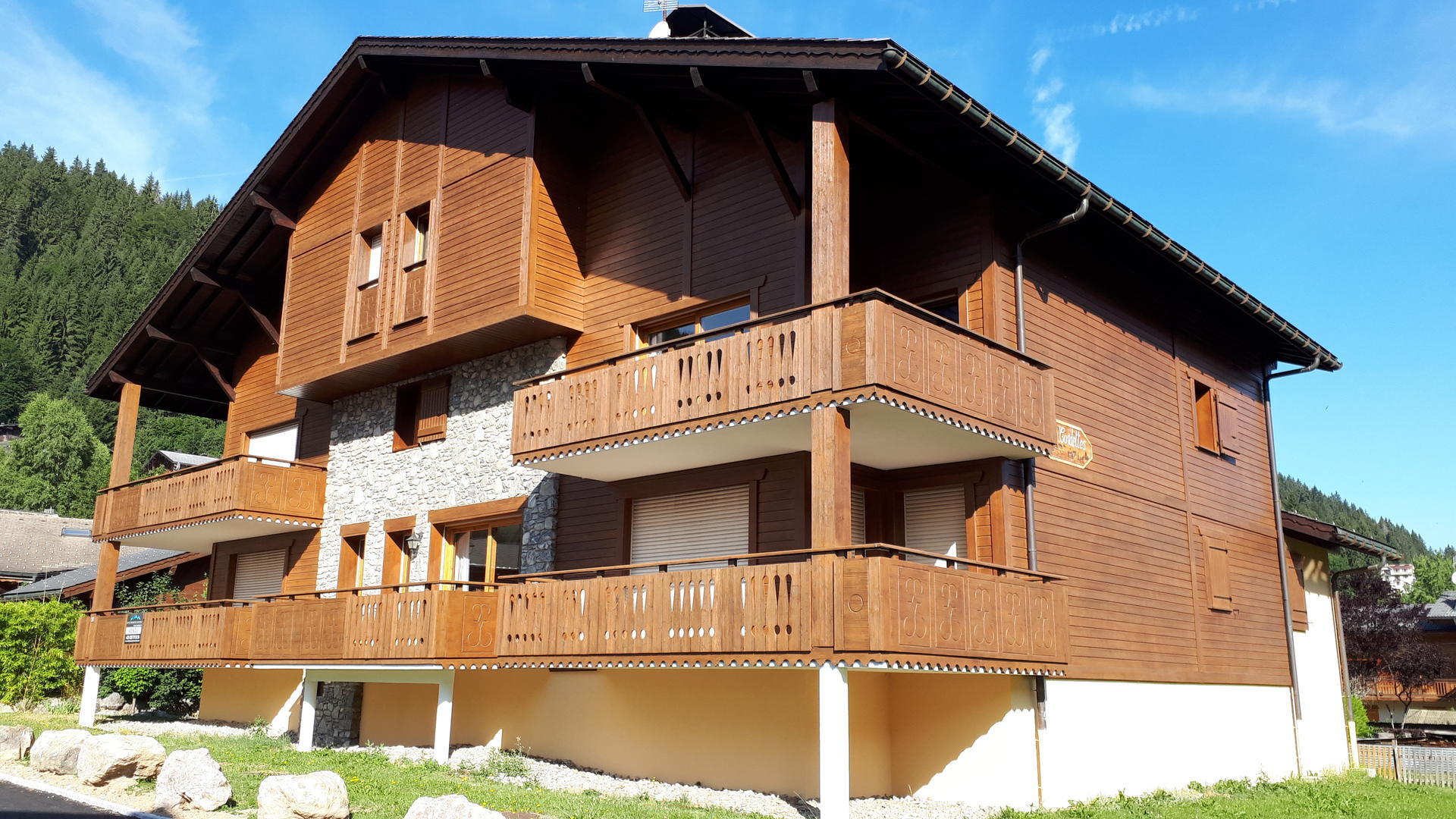 An easy flat walk of 450m in to the centre of Morzine where you can jump on the Super Morzine and Pleney lifts for quick access to the Portes du Soleils amazing skiing and biking. A regular free bus service runs into the centre and there are a couple of very good restaurant/bars and a supermarket in close proximity.