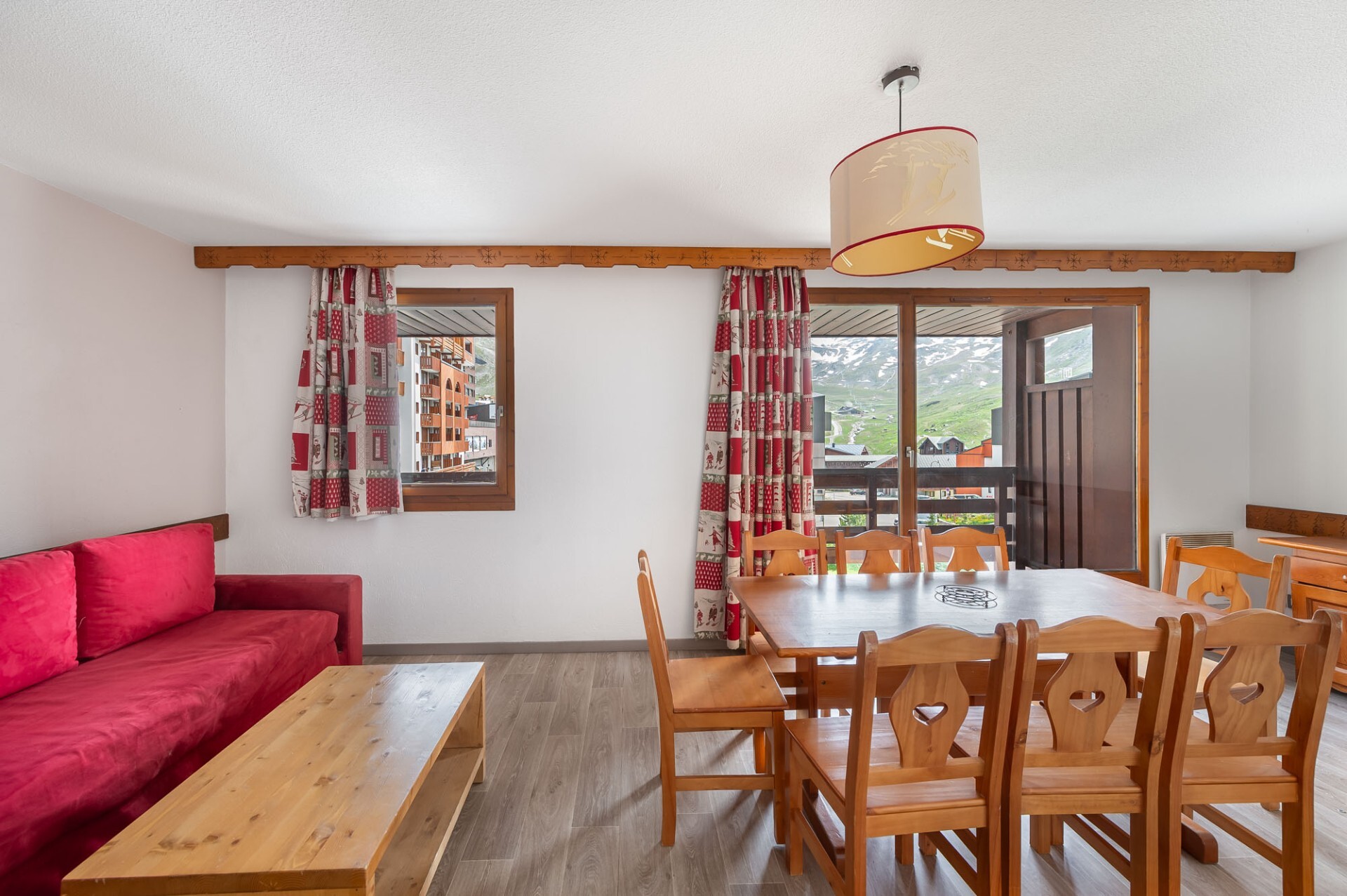 Thanks to its balcony, you’ll enjoy a splendid view of the surrounding slopes and peaks.