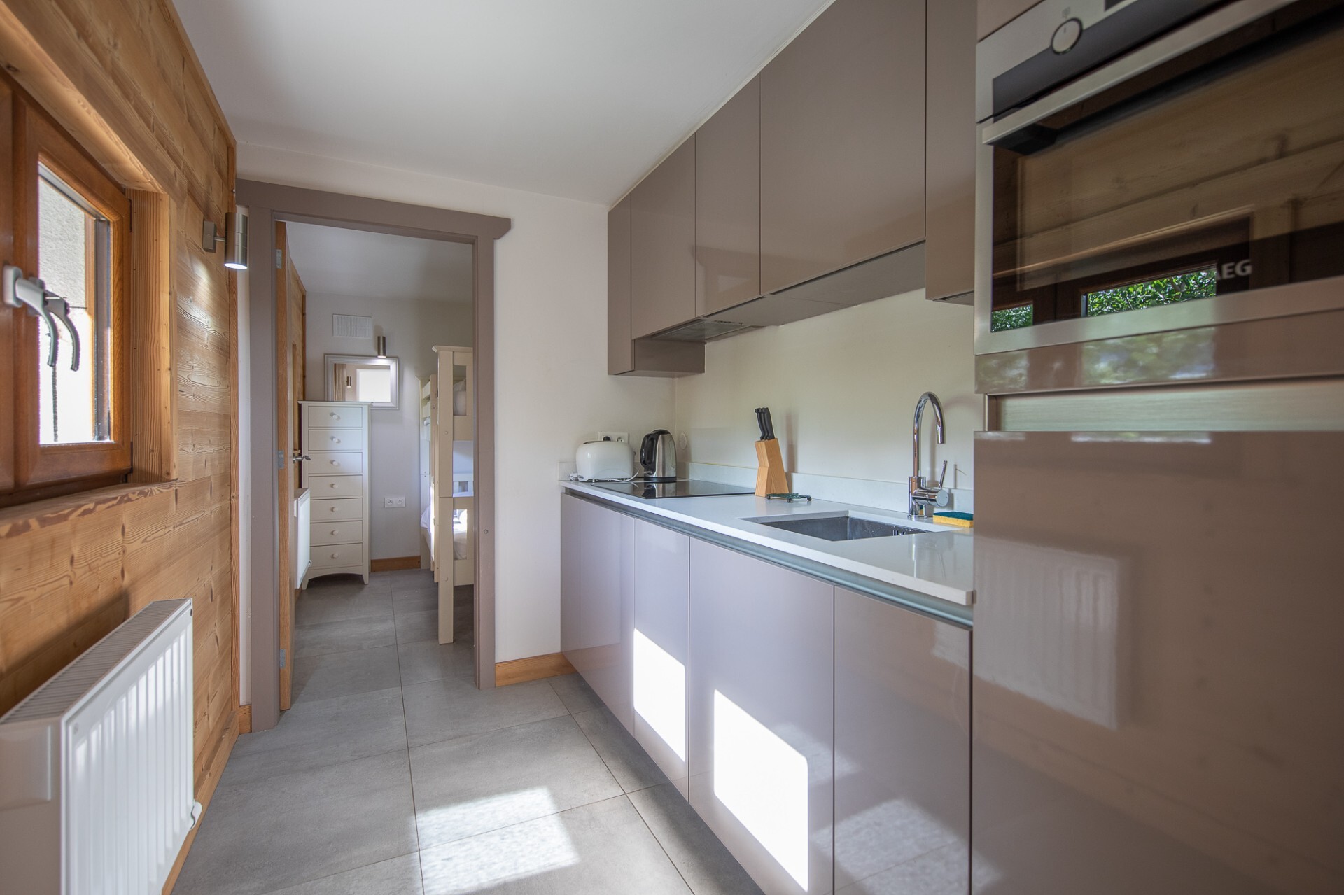 Has a decent sized ski and boot room at the rear of the upper floor and an off street parking space.