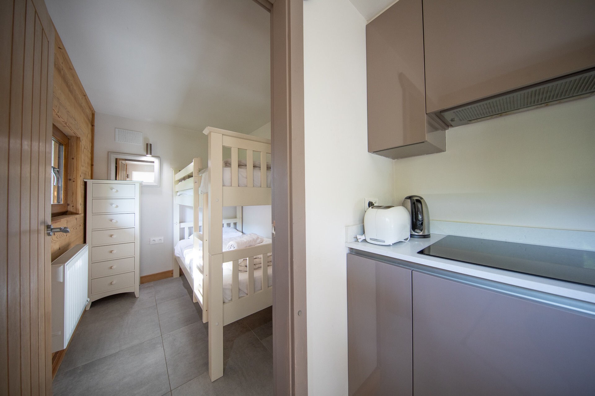 A 3 bedroom plus bunk room duplex apartment that can be divided in two by just locking an interconnecting door so that you have a 2 bed 2 bath apartment on the upper floor and a 1 bed plus bunk room apartment on the lower floor. Both fronted by sunny balconies looking across the village.