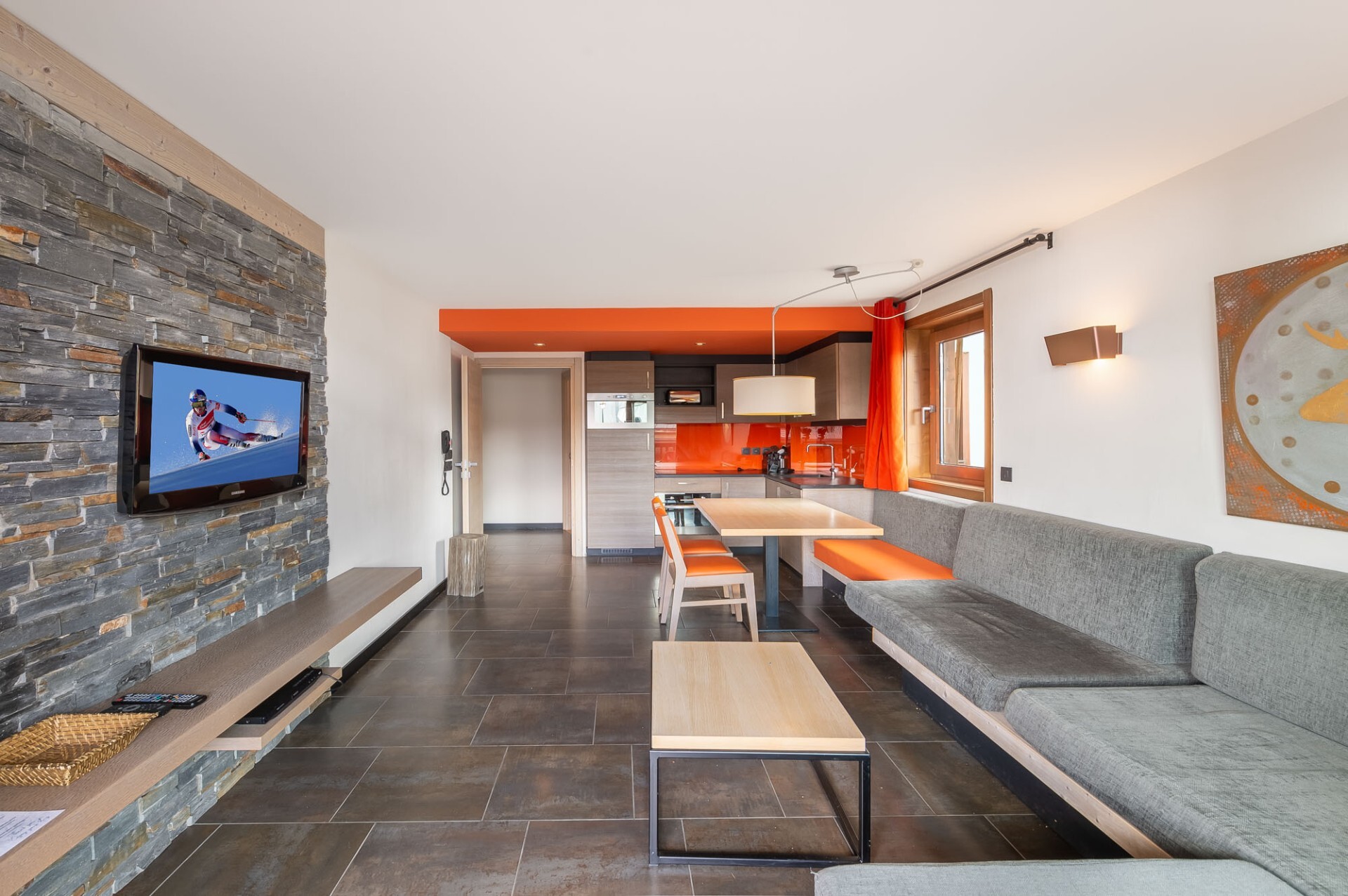 Comfort and well-being are the order of the day in this carefully decorated apartement, which features traditional materials such as wood and stone.