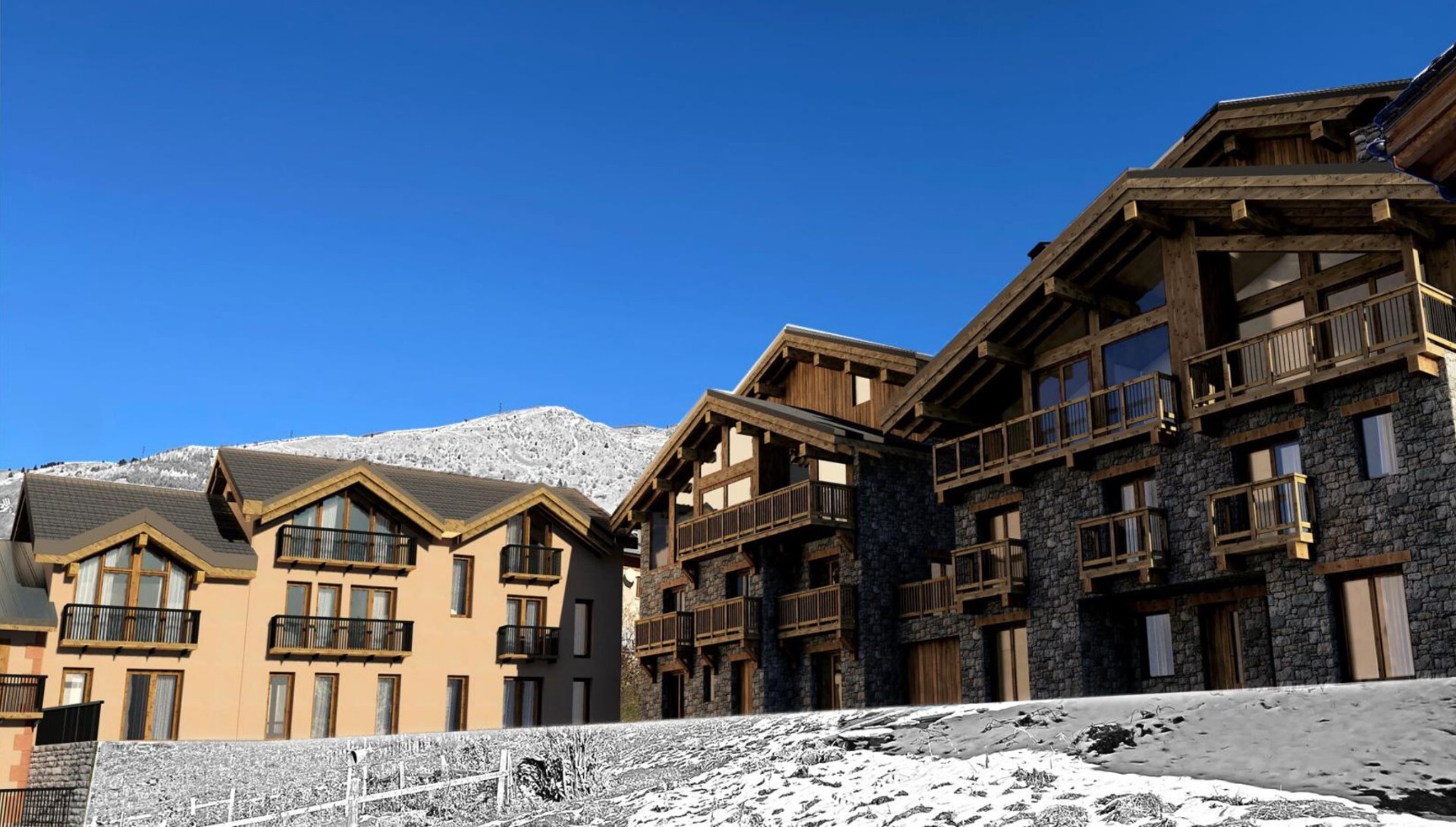 These prestigious properties, respecting the traditional architecture and offering modern materials and finishes, offer beautiful and bright volumes between 145 and 365 sq.m and outdoor spaces to enjoy the views of the mountains.
