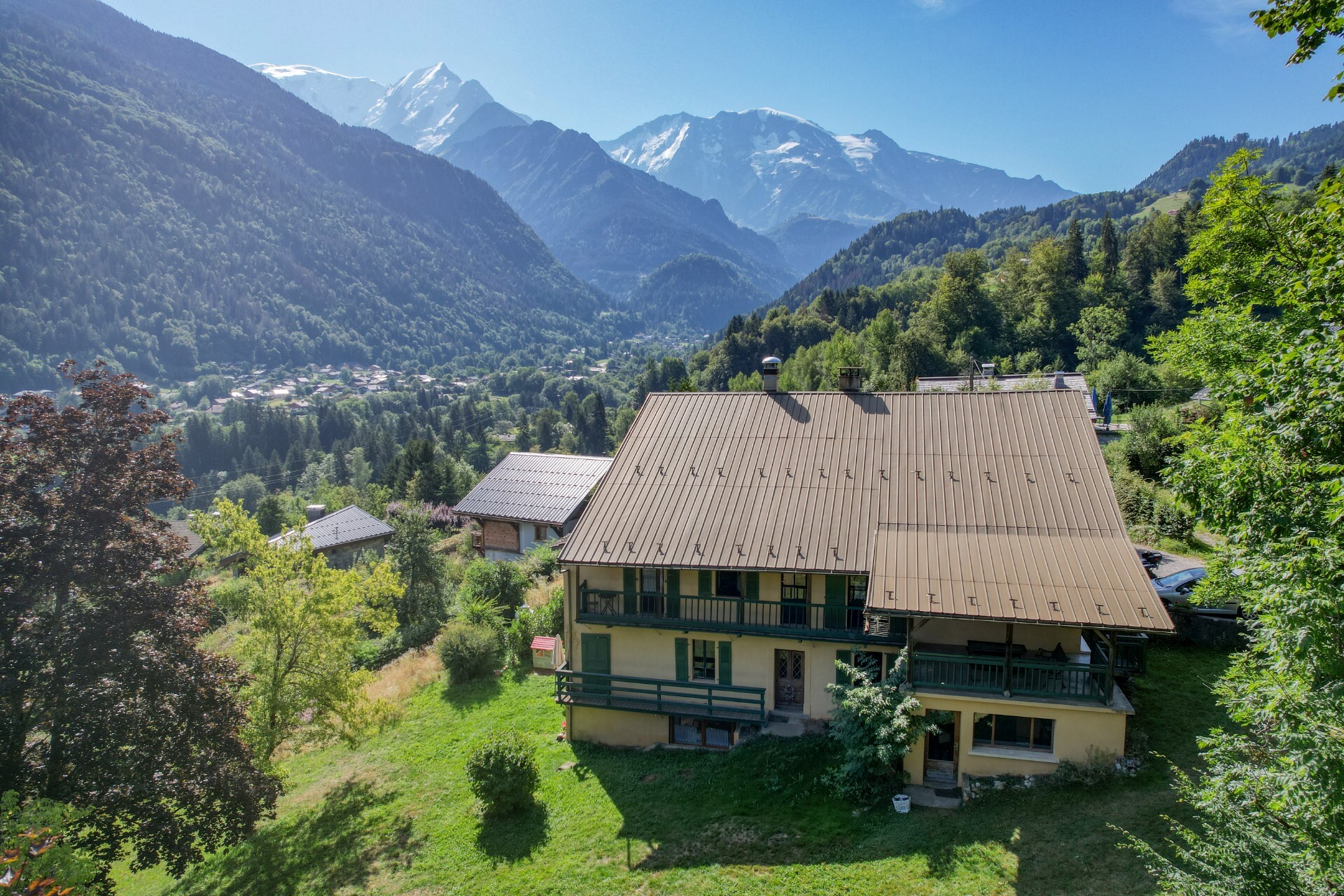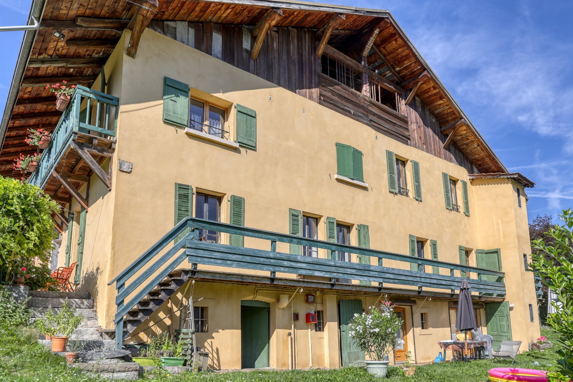 Farmhouse dating from 1832, currently used as a rural gîte and holiday cottage. The property has a total floor surface area of approx. 861 sqm, including approx. 506 sqm of living space, complete attic space for conversion and other useful areas. Spread over four levels, and currently divided into 12 bedrooms, bathroom and toilet facilities, various shared reception rooms: professional kitchen, dining room, games/relaxation room, entertainment room, as well as 63 sqm of staff accommodation, a second 2-bedroom furnished holiday home and almost 100 sqm of attic space that could be converted. All built on a very attractive plot of around 2,725 sqm, most of which can be built on and faces south-east, with a dominant view over the village of Saint Gervais Mont Blanc, the Dômes de Miage, the Prarion and the Fiz mountains. Varied potential, come and discover it quickly!