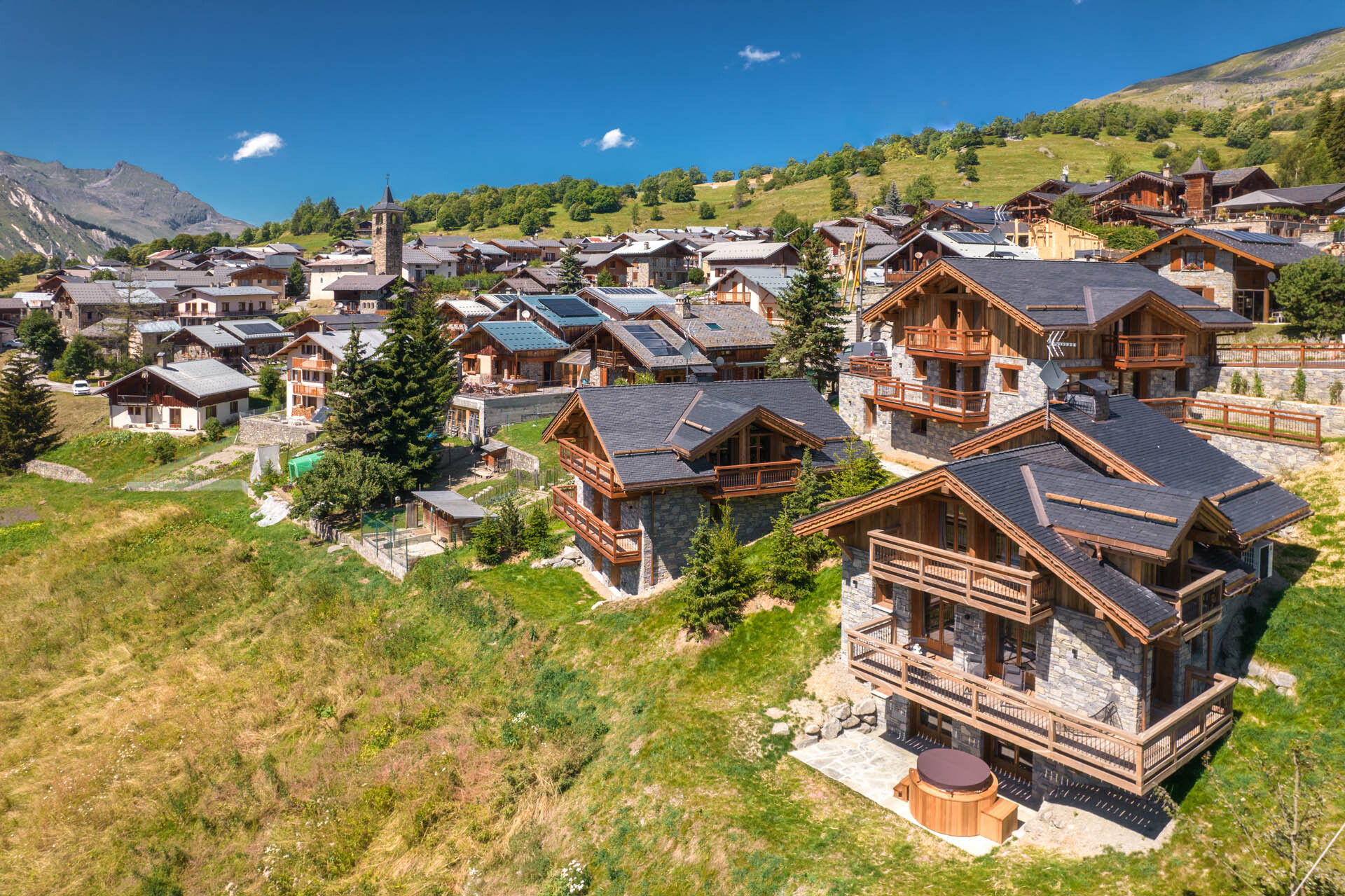 Nestled just a stone’s throw from Saint-Martin-de-Belleville, this magnificent 3-storey, 193 sq. m chalet stands in the heart of a village renowned for its emblematic stone bell tower.