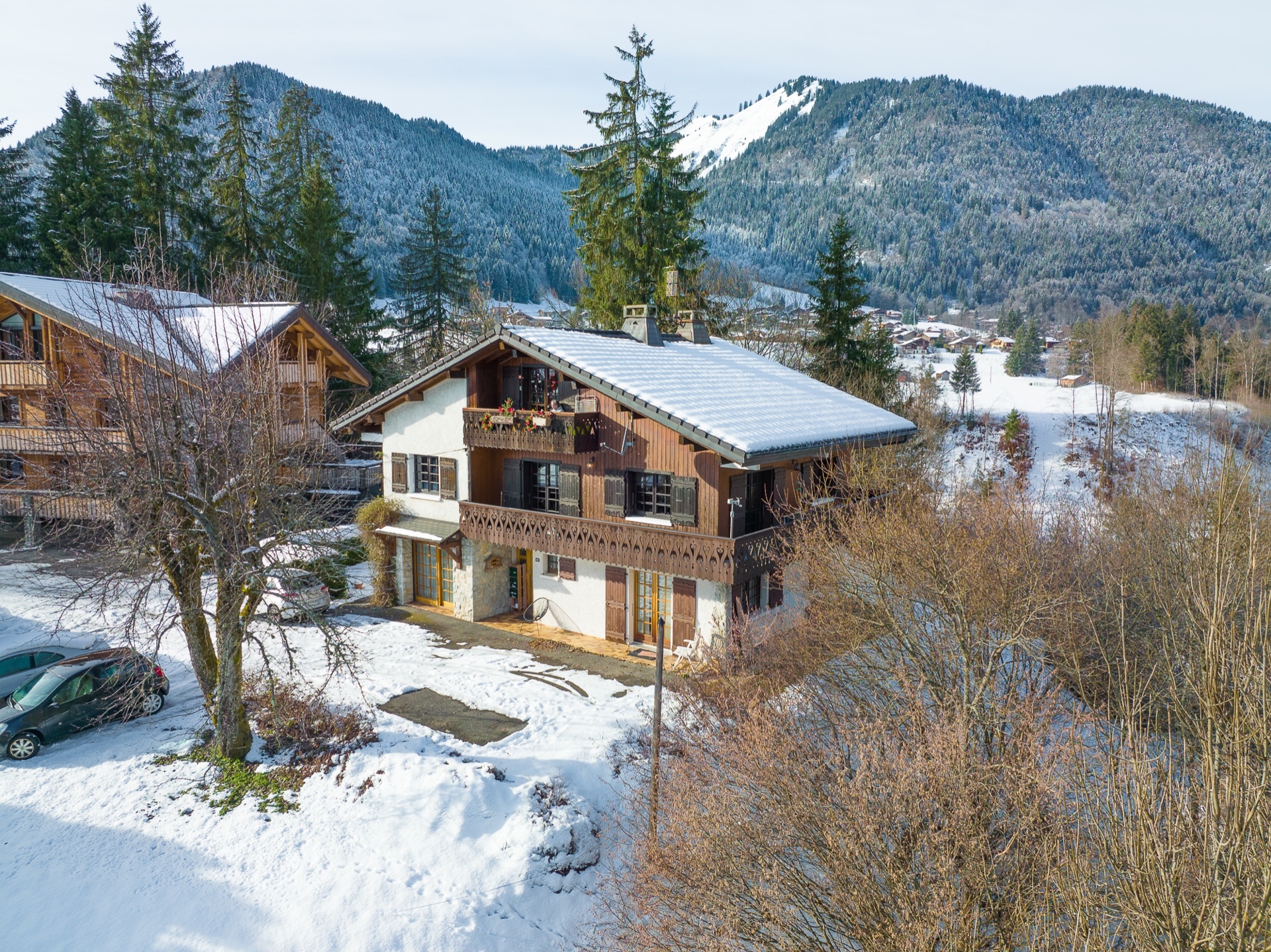 Very bright and spacious 2 bedroom 2 bathroom apartment on the first floor of a small building, located in a quiet no through road just a few minutes from the centre of Morzine.