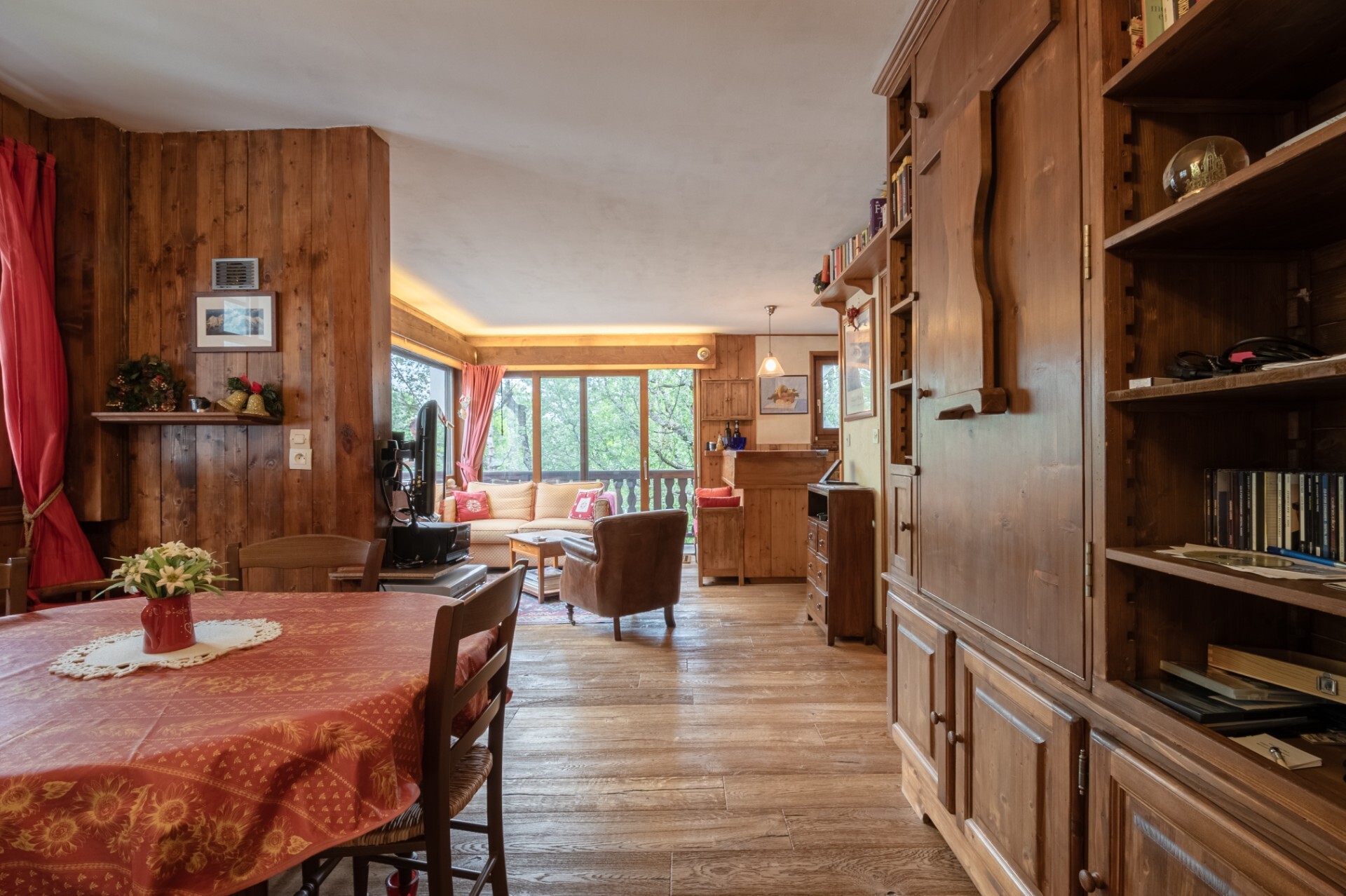 The second appartment has an entrance hall with a hallway, a separate WC, a double bedroom with balcony, a bathroom, a fitted kitchen opening onto a living room with fireplace and access to a large corner balcony facing Mont Blanc.