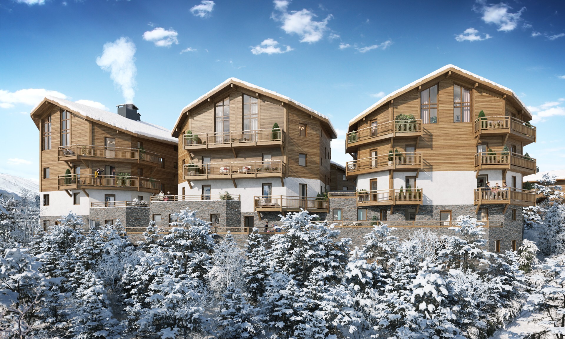 Note that each apartment has a parking space, a cellar and a private ski locker.