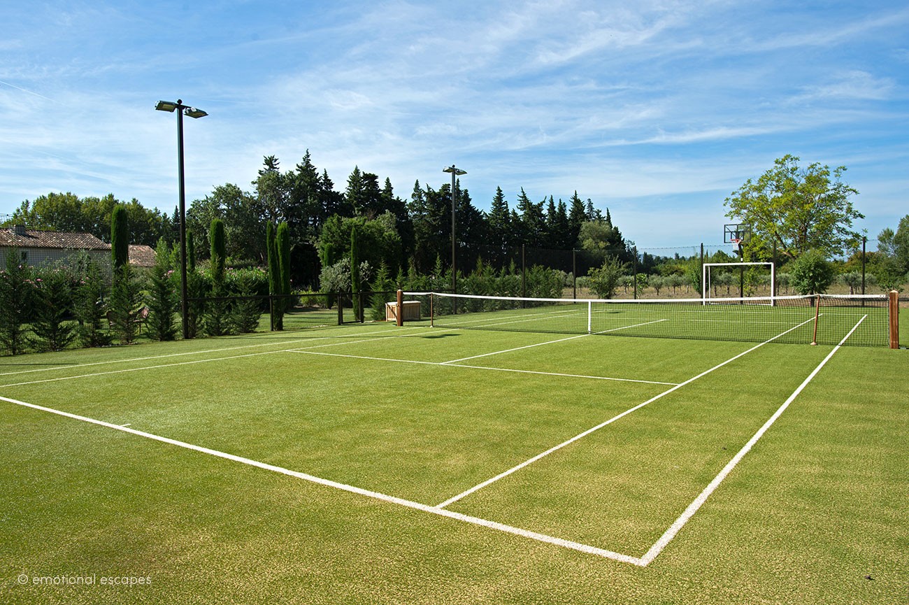 This luxury vacation rental boasts a huge heated salt-water pool and a synthetic surface, flood-lit tennis court, which doubles-up as a soccer and/or basketball court. The spacious, manicured gardens are planted with 300 olive trees, a lavender field, cypress trees, platanes, and much more.